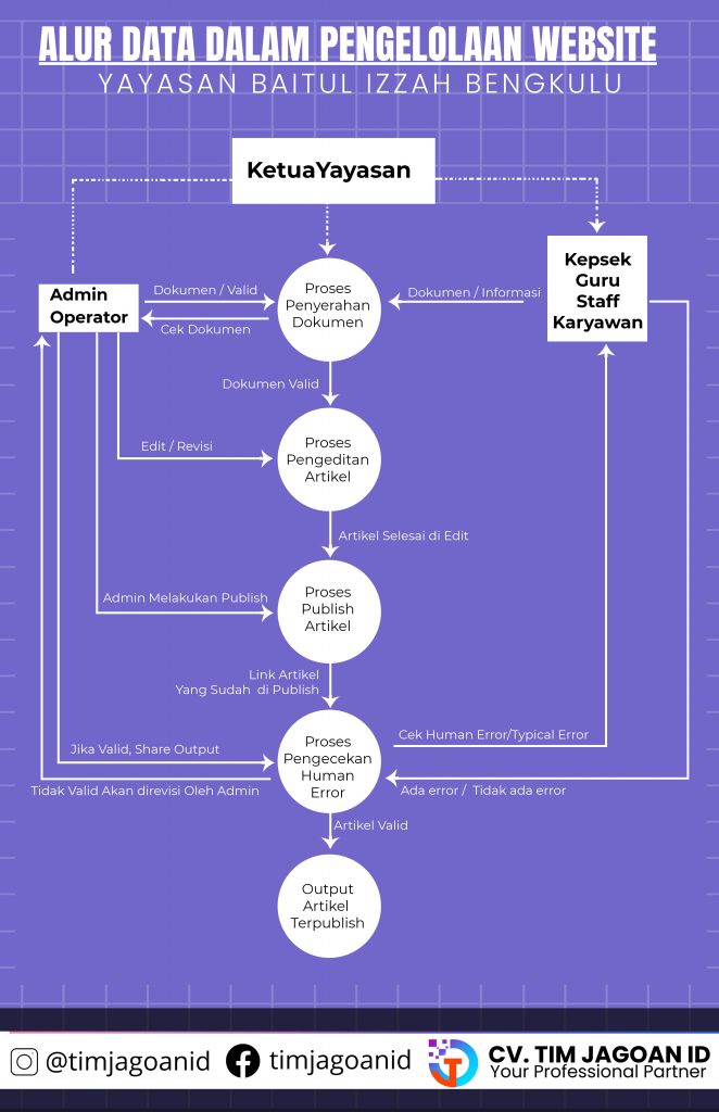 Alur data pengelolaan website, yayasan baitul izzah bengkulu